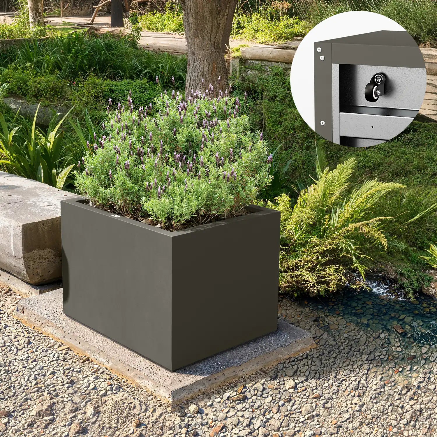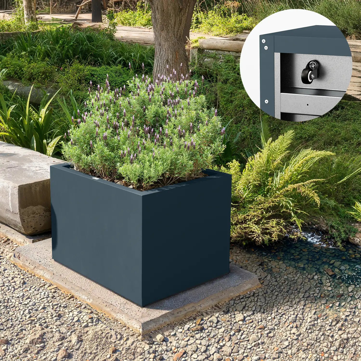Antraciet, een diepe tint grijs, is perfect voor wie een subtielere stijl wil dan zwart. Een antraciete plantenbak combineert goed met zowel heldere bloemkleuren als groenere planten en zorgen voor een stijlvolle, tijdloze uitstraling.